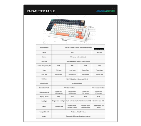 Bàn phím cơ VGN N75 Pro 3 Modes là lựa chọn hoàn hảo cho cả game thủ và dân văn phòng nhờ thiết kế hiện Vednìg hiện đại, tích hợp 3 chế độ kết nối (USB-C, Wireless 2.4G, Bluetooth 5.0). Với layout 75% (82 phím), sản phẩm mang đến sự cân bằng giữa tính gọn nhẹ và đầy đủ chức năng, cùng hiệu năng vượt trội nhờ công nghệ tiên tiến.